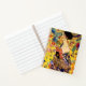Notebook featuring Gustav Klimt’s oil painting Lady with Fan (1918). A woman wearing a blue kimono holds a red fan against a colourful yellow background of flowers and peacocks. A great gift for fans of Japonisme and European art.