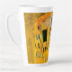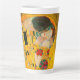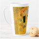 Latte Mug featuring Gustav Klimt’s oil painting with gold leaf The Kiss (1908). A man and woman, wearing brilliant golden colours, lovingly embrace and kiss in a field of flowers. A great gift for fans of Art Nouveau and Austrian art.