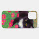 iPhone Case featuring a Gustav Klimt tuxedo cat! This adorable black and white kitty sits in a field of red, blue, white, and orange flowers. An awesome gift for cat lovers and Austrian art enthusiasts!