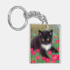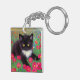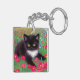 Keychain featuring a Gustav Klimt tuxedo cat! This adorable black and white kitty sits in a field of red, blue, white, and orange flowers. An awesome gift for cat lovers and Austrian art enthusiasts!