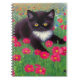 Notebook featuring a Gustav Klimt tuxedo cat! This adorable black and white kitty sits in a field of red, blue, white, and orange flowers. An awesome gift for cat lovers and Austrian art enthusiasts!
