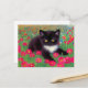 Postcard featuring a Gustav Klimt tuxedo cat! This adorable black and white kitty sits in a field of red, blue, white, and orange flowers. An awesome gift for cat lovers and Austrian art enthusiasts!
