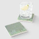 The coasters are gorgeous, a quality feel and heavy weight. They look like a precious archeological find. A rustic stone juxtaposed with a modern floral black and white print. I like the way the print goes slightly imperfect on the cut stone edges giving them a kind-of natural beauty.