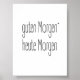 Guten Morgen heute Morgen, good morning today in German. Typography in black and (transparent) white. You can change the background colour.