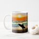 Guy on Beach with Surf Board Sunset Coffee Mug
