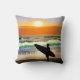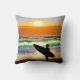 Guy on Beach with Surf Board Sunset Cushion
