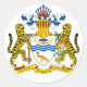 The coat of arms of Guyana was granted by the College of Arms on 25 February 1966. It includes a crest of an Amerindian head-dress symbolising the indigenous people of the country, this crest is also called the Cacique's Crown; two diamonds at the sides of the head-dress representing mining industry; a helmet (monarchial insignia); two jaguars as supporters holding a pick axe, sugar cane, and a stalk of rice (symbolising Guyana's mining, sugar and rice industries); a shield decorated with the Victoria regia lily, Guyana's national flower; three blue wavy lines representing the three main rivers of Guyana; and the national bird, the Canje Pheasant (Opisthocomus hoazin). The national motto, "One people, One Nation, One Destiny", appears on the scroll below the shield.