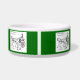 Greater Washington Dalmatian Club Road Trial logo -- undated version. Dog bowls with black and white drawing, accented with brown and green. Background colour of your choice, or leave it green as shown. Personalise it with your dog's name and titles.