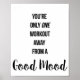 Fitness Motivational Wall Decor "You're only one workout away from a good mood".