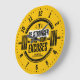 Purchased this online and it got delivered quickly. It was a present for my Dads 70th birthday. He loves clocks so decided to get him one with something written on it. Battery went in and it started working straight away. Dads had no issues with it. Printing was just how it came up online.