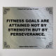The exercise quote reads: FITNESS GOALS ARE ATTAINED NOT BY STRENGTH BUT BY PERSEVERANCE. ~ Felicity Luckey