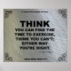 The exercise quote reads: THINK YOU CAN FIND THE TIME TO EXERCISE, THINK YOU CAN'T; EITHER WAY YOU'RE RIGHT. ~ Felicity Luckey
