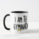 I am the gyminator in rough text with the letter M in the word gyminator wearing sneakers is a humourous play on the word terminator and a fun gift or physical education teachers, trainers and exercise gurus.e.