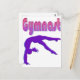 Gymnastics themed design says "gymnast" and has a female gymnast silhouette doing a back handspring step-out skill seen often in many girls gymnastics floor routines. Has a semi metallic finish appearance that adds a little pop and dimension to this artwork.