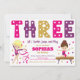 Gymnastics 3rd Birthday Invitation | Hot Pink
