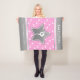 Beautiful gymnastics fleece blanket with a pink background covered in white stars. It has a grey star with a white silhouette, and a grey banner with a pink and white stripe. Add your name & team name before you order! You can also use the "customise it" button to pick a different font or colour for the text! If you wish, you can clear the text fields to order without text.