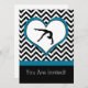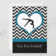 Personalised gymnastics party invitations with chevron stripes, a gymnast inside a heart, and custom text.