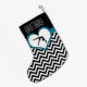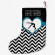 A Christmas stocking for gymnasts with a classy black and white chevron stripe design. It has a heart with teal outline and a black gymnastics silhouette in the centre! Add your own text before ordering!