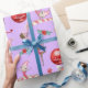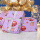 You can add your name to this Christmas wrapping paper, that features a lovely watercolor illustration of a couple of gymnasts in Santa hats, as well as candy canes pine cones and lots of other Christmas decorations. It creates a one of a kind pattern in a light pink background.
