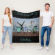 Black gymnastics fleece blanket with gymnast and personalized name.