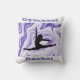 Girls Gymnastics Floor, Beam, Vault and Bars w/ Her Custom Name on this beautiful gymnastics throw pillow with a beautiful purple and white colour swirl background and stunning gymnast silhouettes.