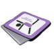 Gymnastics gifts, gymnastics performer custom laptop sleeve design featuring a minimalist black icon of a gymnast wearing a purple leotard with a purple border around.