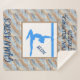 Gymnastics Sherpa blanket with personalised name and gymnast on balance beam.