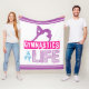 Colourful gymnastics fleece blanket with the text, "Gymnastics is my Life". It has a gymnast silhouette that appears to use the word "Gymnastics" as a beam. You can change the background colour by using the "customise it" button. (LIGHT COLORS work best)