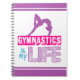 Colourful gymnastics notebook with the text, "Gymnastics is my Life". It has a gymnast silhouette that appears to use the word "Gymnastics" as a beam. You can change the background colour by using the "customise it" button. (LIGHT COLORS work best)