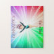 Beautiful lights coloured puzzle with gymnast in purple. Personalised name.