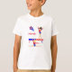 Long sleeved gymnastics tee shirt with two girls, beam, and star all in red, white and blue colours. Custom with name and letter in star.