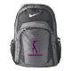 Gymnastics "Nike" performance backpack in anthracite/black with a "Gymnast" on front! Backpack is made for comfort with max air cushioning, internal laptop sleeve and tablet sleeve. Backpack is durable/water resistant!