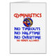 Our Gymnastics No Wimps points out there are no second chances in Gymnastics aka no room for wimps in this sport! *Please note: we offer this design in two colours; one that works for light colours and one for dark colours. If you create your own shirt, please make sure you choose the correct colour design.