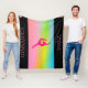 Gymnastics fleece blanket with rainbow colours and personalised name.