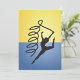 In gymnastics the ribbon on the floor is a great act to do. This design is a gymnastics floor routine. The gymnast is on the floor in a jump with the ribbon in a nice swirling pattern. This gymnastics ribbon routine looks great on these invitations