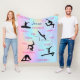 Gymnastics Skills Fleece Blanket w/ Name - Blanket features a variety of gymnast silhouettes and is speckled with popular gymnastics skills words all over such as cartwheel, salto, aerial. Best of all this blanket is personalised with the name of your gymnast! Makes a great gift for any level gymnast!