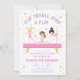 Let’s flip, tumble, jump & play! Make your little gymnast’s birthday unforgettable with this super cute gymnastics birthday party invitation. Featuring three gymnasts on a pink balance beam, sparkling glitter stars, and pastel colours like pink, purple, and teal, this design is perfect for a high-energy celebration full of cartwheels, cupcakes, and fun!