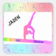 GYMNASTICS STICKERS WITH GYMNAST ON BALANCE BEAM & PERSONALIZED NAME.