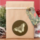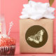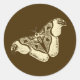Sticker in a digital sketch of a Gypsy moth, adapted from a vintage illustration, in beige on a dark chocolate brown background