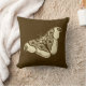 Digital sketch of a Gypsy moth, adapted from a vintage illustration, in beige on a dark chocolate brown background throw pillow