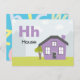 Letter H is for House in our Alphabet Flash Card set. Get all 26 letters of the alphabet! A double-sided postcard that is great for memory games and teaching, geared for education, schools, teachers and homeschool for kindergarten and babies. All text is editable if you need to customise.
