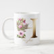 H Letter Gold Monogram | Pink Magenta Floral Large Coffee Mug