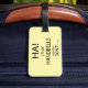 I was happy with the acrylic tag but it came with a thin leather strap to attach the tag to luggage (like a cat collar). I replaced the strap with a metal ring off of a key ring as the leather strap would come undone or break easily as luggage is sometimes handled without much care by airlines. Printing is great. Colours and positioning of the design I put on the tag were perfect. Very pleased.