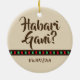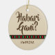 Ornament with the words "Habari Gani?" that translates to 'What's the news?" which is part of the Kwanzaa celebration. The words are in brown on a tan background and this item has a red, black, and green accent stripe.