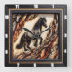 Introducing a stunning timepiece that transcends mere functionality, this exquisite clock features a striking black horse, a symbol of strength and elegance, gracefully depicted against a backdrop of rugged beauty. The clock is elegantly framed by a ½-inch flat black wooden border, which enhances its sophisticated allure. The embedded wood showcases deep carvings that reveal a charred, textured grain, adorned with rugged burn marks in shades of red, grey, and black, creating a captivating contrast against the lighter wood. This piece not only serves as a practical accessory but also as a striking work of art that will elevate any space it graces.