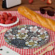 HAIKU/ BLACK WHITE PINK YELLOW SPRING FLOWERS PAPER PLATE