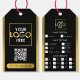 A professional black and gold custom business hair extensions branding hang/swing tag. A personalised hang hair extensions tag design perfect for your business product packaging. Customise this professional hair extensions hang swing tag label and make it your own! Customise your business branding logo, website, scannable QR Code, hair extension product details and make it your own! Perfect hair extension marketing, branding and product packaging.