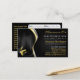 Customise this hair salon business card that doubles as an appointment card. Displays image of hair, salon comb, salon shears (scissors) and blow dryer. Colours are black, white accented with gold text. Design your own cards here.