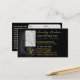 Add your own photo here to customise this hair salon business card that doubles as an appointment card. Displays image of hair, salon comb, salon shears (scissors). Colours are black, white accented with gold text. Design your own cards here.