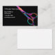 Classy Hair Stylist business cards designed with colourful cutting shears and simple layout you can customise online.